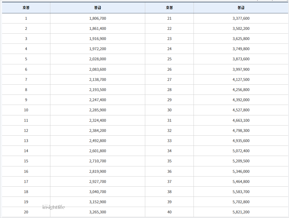 2024 교사 호봉표